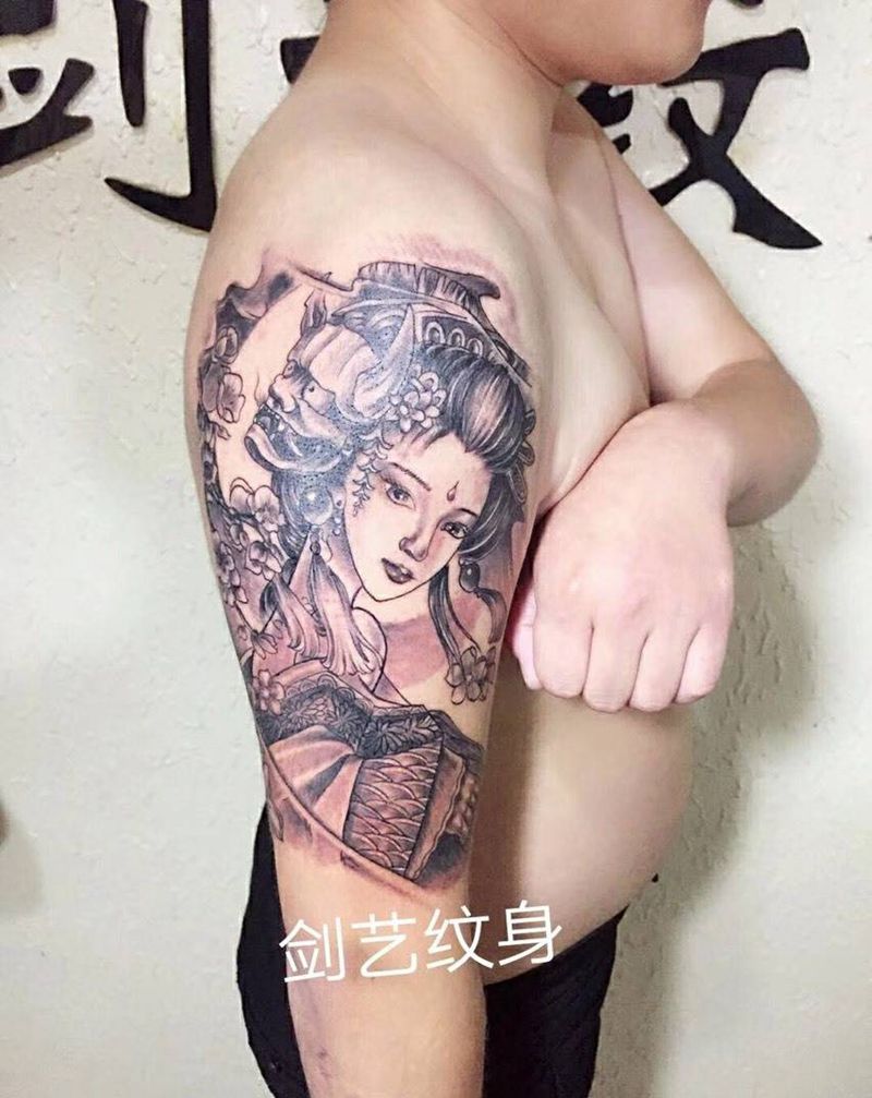 大臂艺姬纹身图片