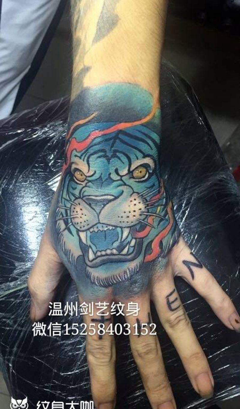 • 手背潮流时尚的玫瑰花眼睛纹身图案