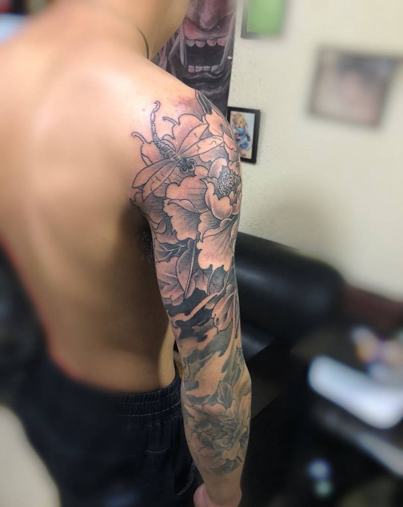 当前位置: 首页 >浙江省温州市纹身店-芸艺纹身纹身图案>黑灰七分袖纹身图片