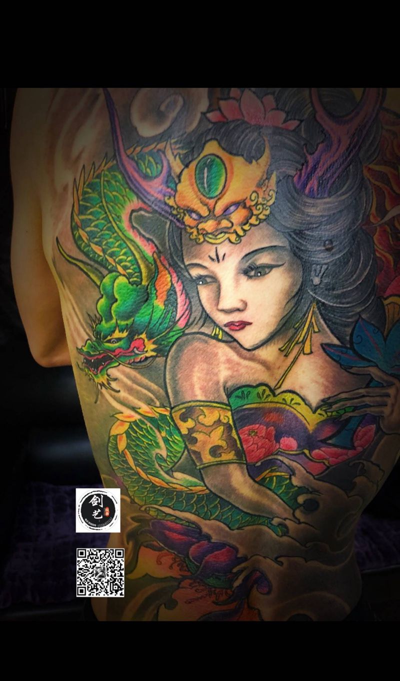 当前位置: 首页 >浙江省温州市纹身店-芸艺纹身纹身图案>满背龙姬纹身图片