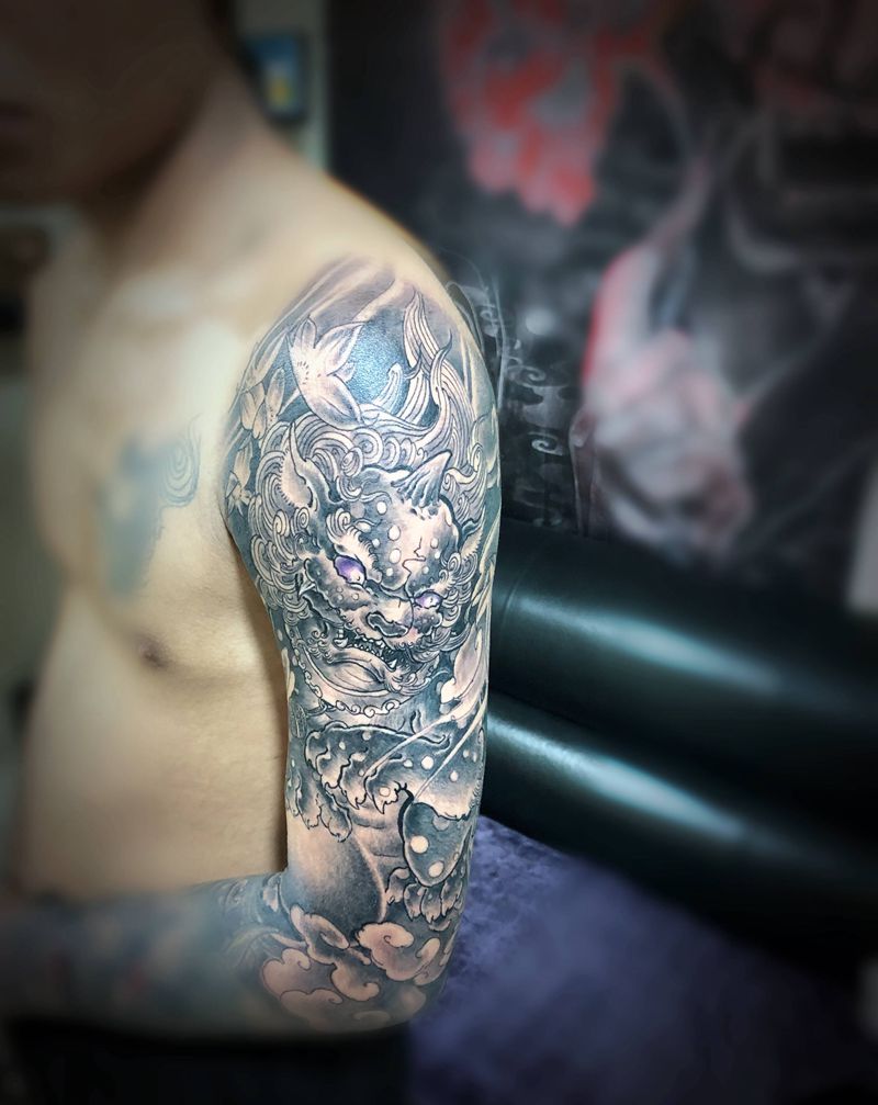 当前位置: 首页 >浙江省温州市纹身店-芸艺纹身纹身图案>唐狮纹身图片_手臂纹身图案