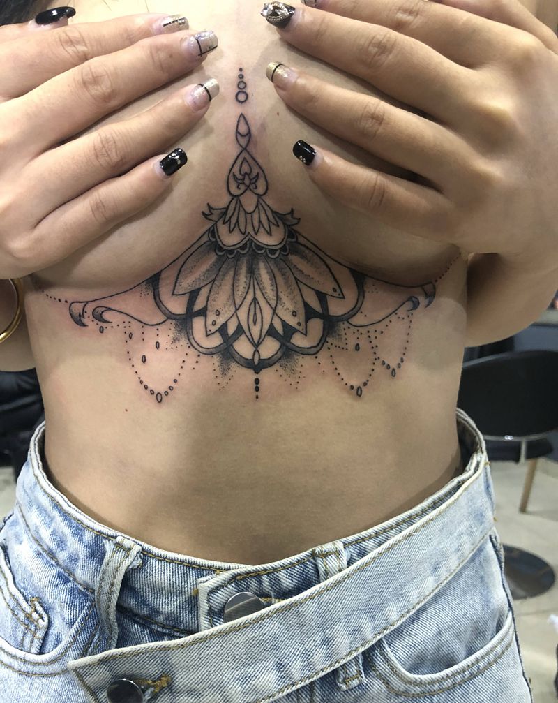 胸花纹身图片_胸部几何点刺纹身图案