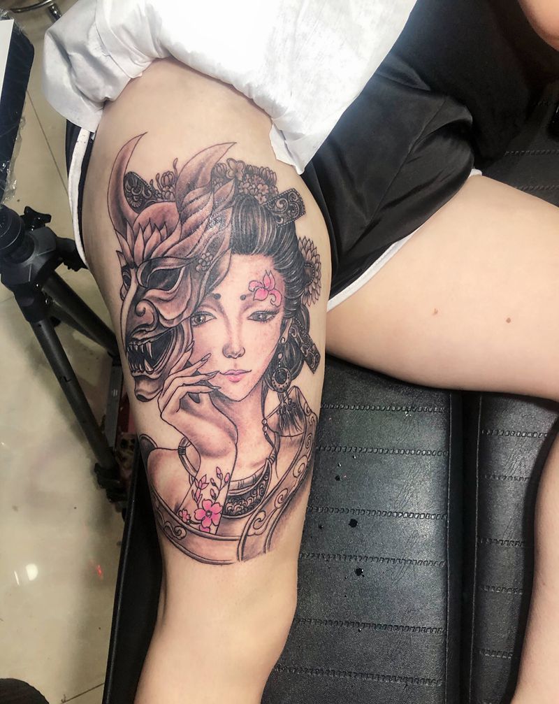 艺姬纹身图片_腿部新传统艺姬纹身图案
