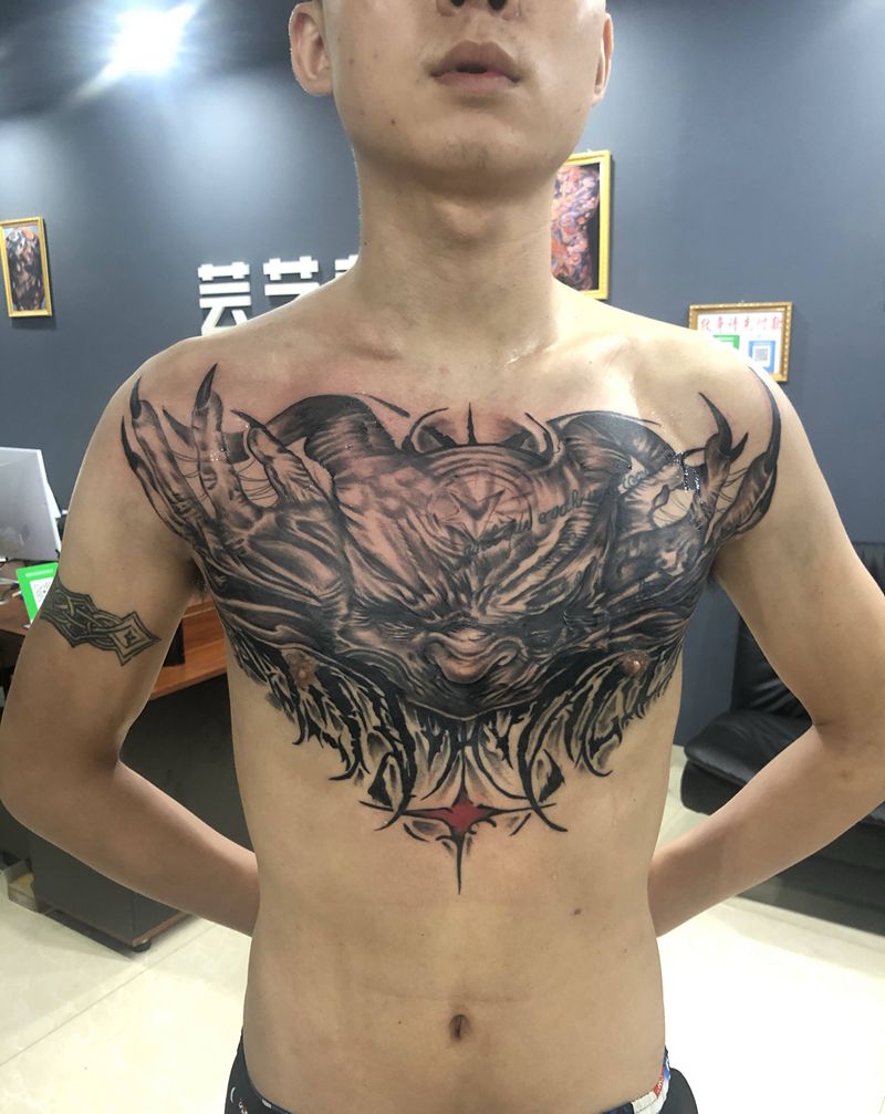 当前位置: 首页 >浙江省温州市纹身店-芸艺纹身纹身图案>欧美纹身图片_胸部欧美写实新传统魔鬼纹身图案