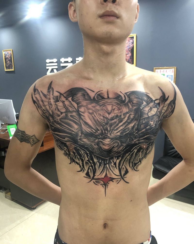 当前位置: 首页 >浙江省温州市纹身店-芸艺纹身纹身图案>欧美纹身图片_胸部欧美写实新传统魔鬼纹身图案