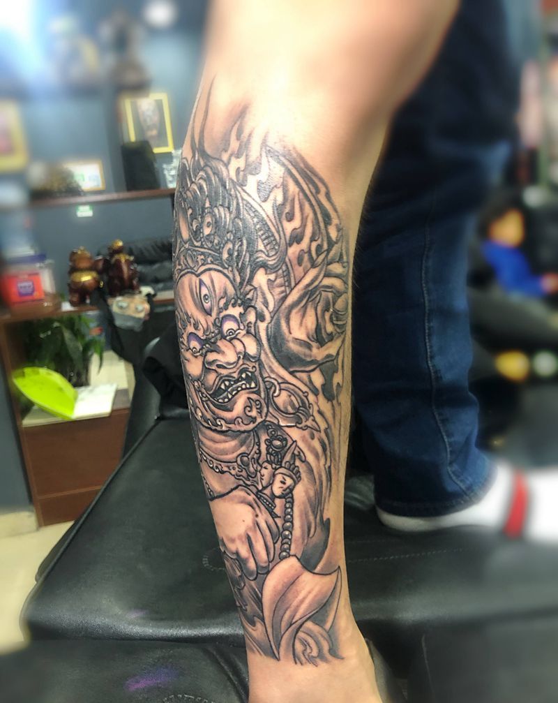 当前位置: 首页 >浙江省温州市纹身店-芸艺纹身纹身图案>不动明王纹身图片_腿部新传统不动明王纹身图案