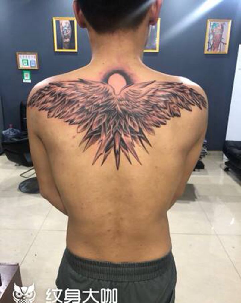 翅膀纹身图片_背部新传统翅膀纹身图案