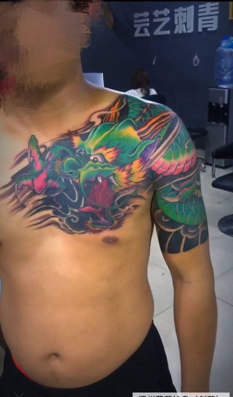 • T网红王老大花腿龙纹身图片_腿部新传统纹身图案