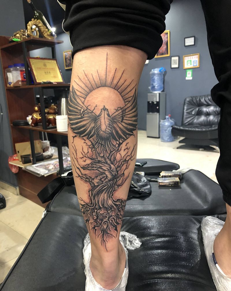 小腿纹身图片_新传统树纹身图案