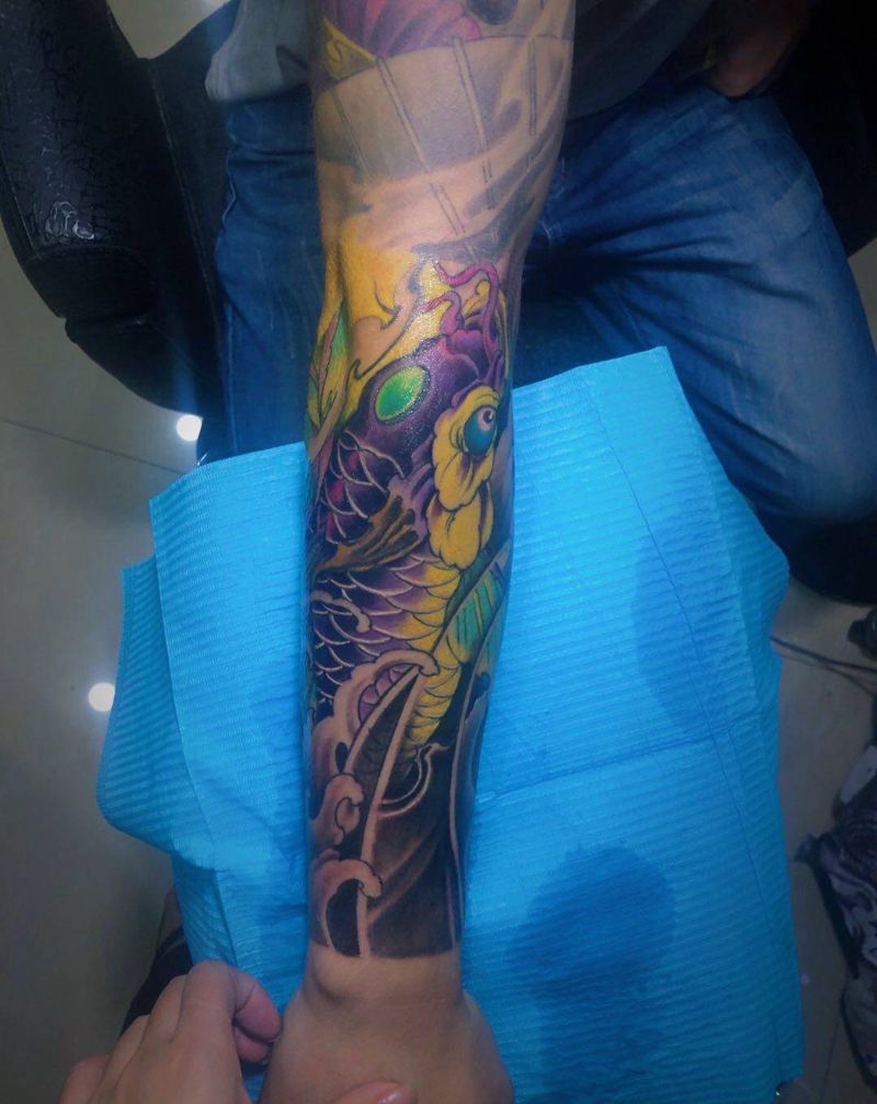 当前位置: 首页 >浙江省温州市纹身店-芸艺纹身纹身图案>鲤鱼纹身图片_手臂新传统鲤鱼小臂纹身图案