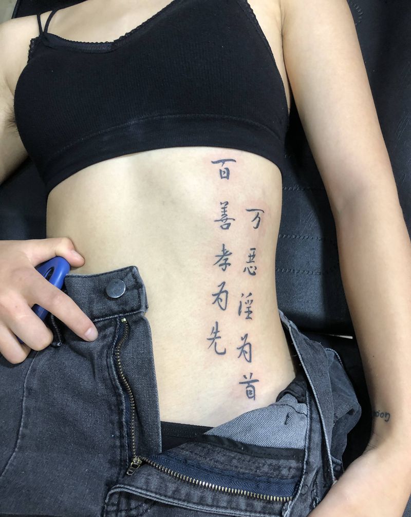 • T关于私处得爱!纹身图片_成品腹部清新字符图腾纹身图案
