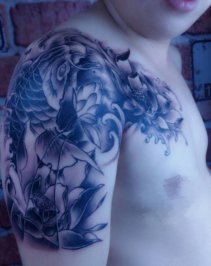 水墨半甲鱼纹身图片