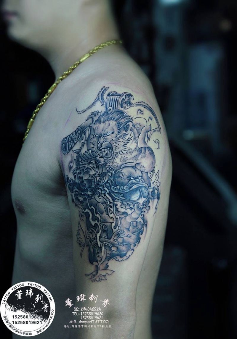 • H传统钟馗纹身 钟馗过肩纹身图案