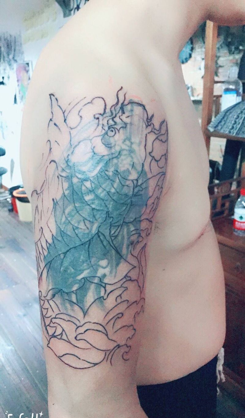 当前位置: 首页 >浙江省温州市纹身店-董玮刺青纹身图案>遮盖要用万能的鱼纹身图片