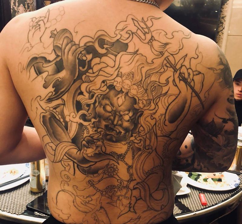 黑灰满背纹身图案
