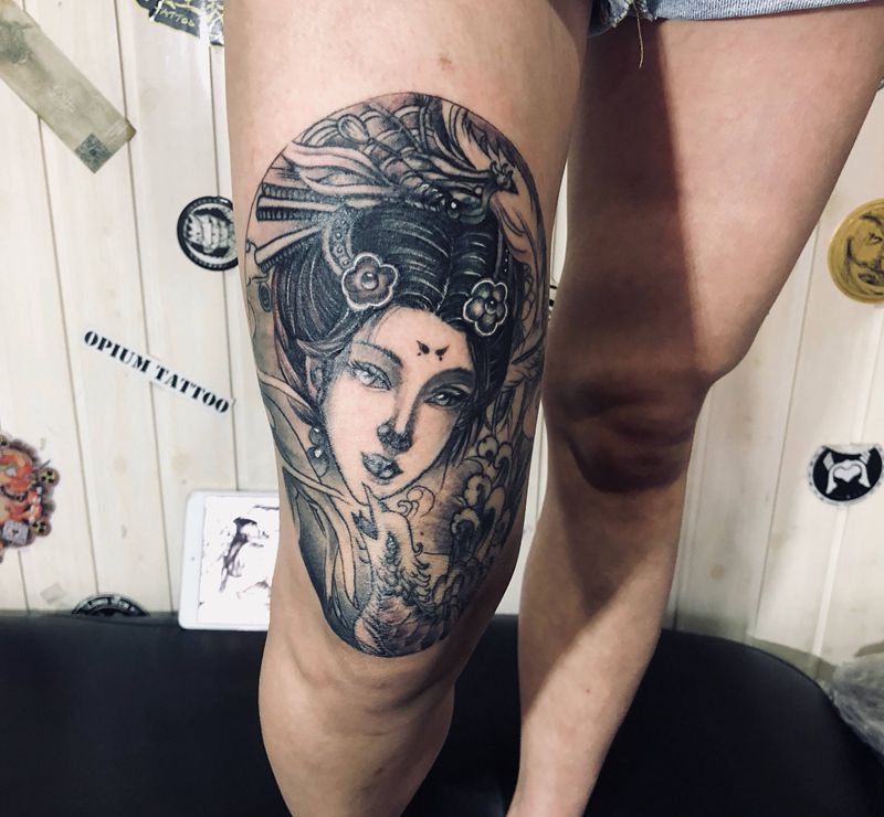• T网红王老大花腿龙纹身图片_腿部新传统纹身图案