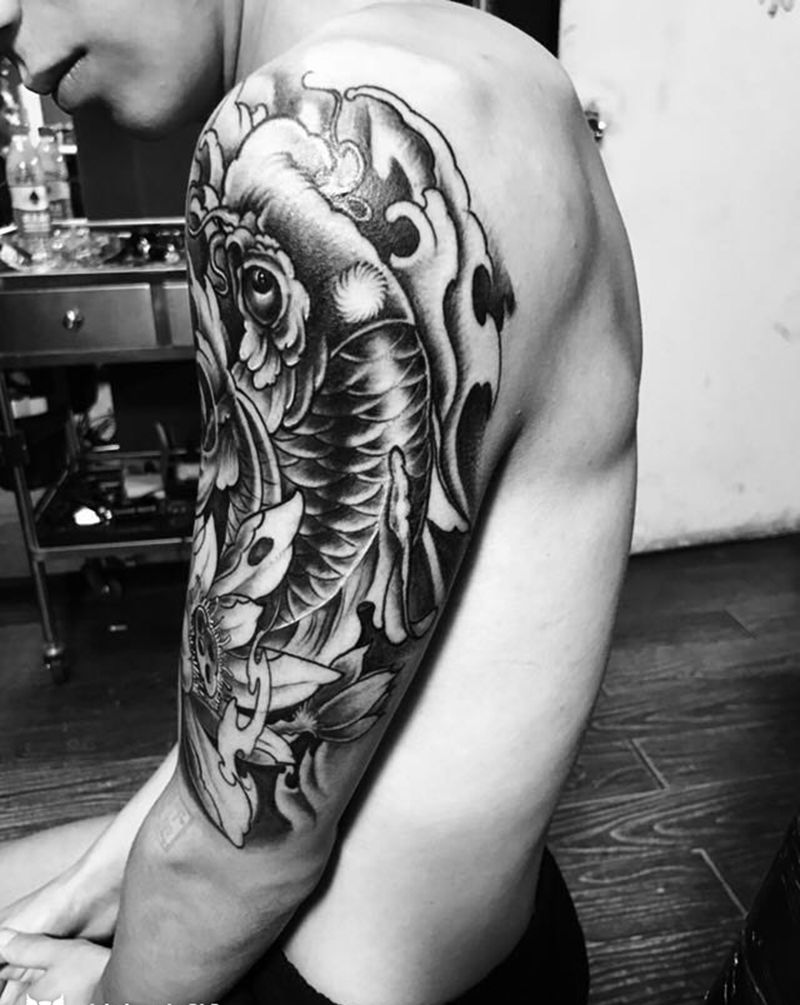 鲤鱼纹身纹身图片_手臂传统成品纹身图案