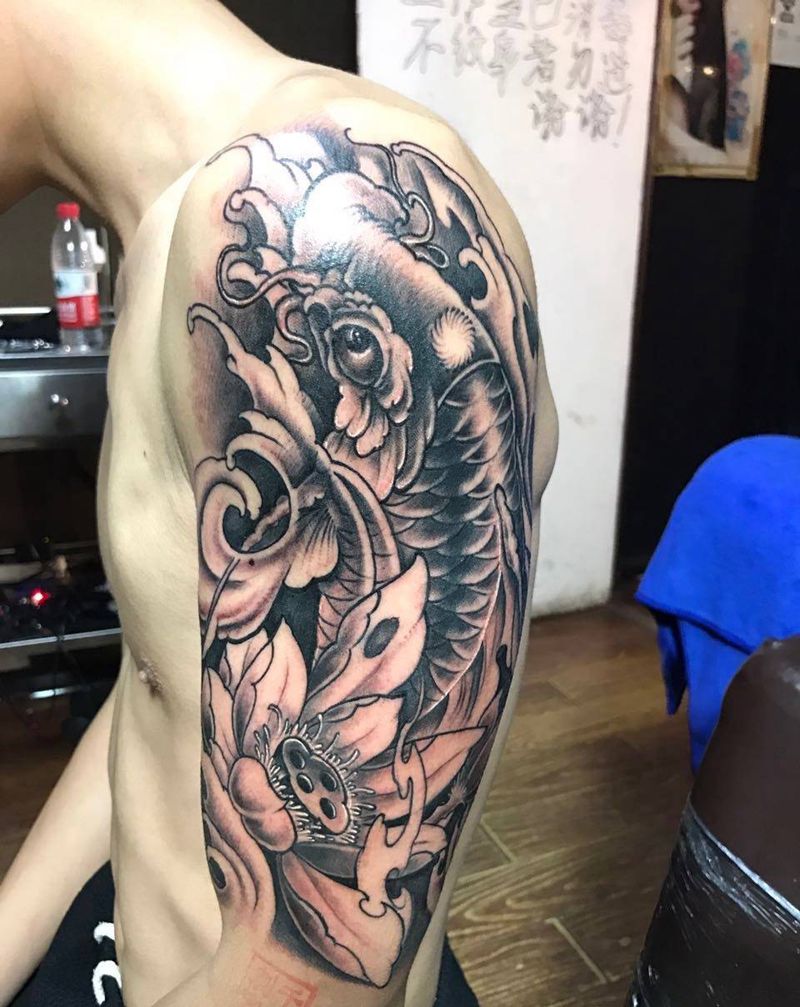 鲤鱼纹身纹身图片_手臂传统成品纹身图案
