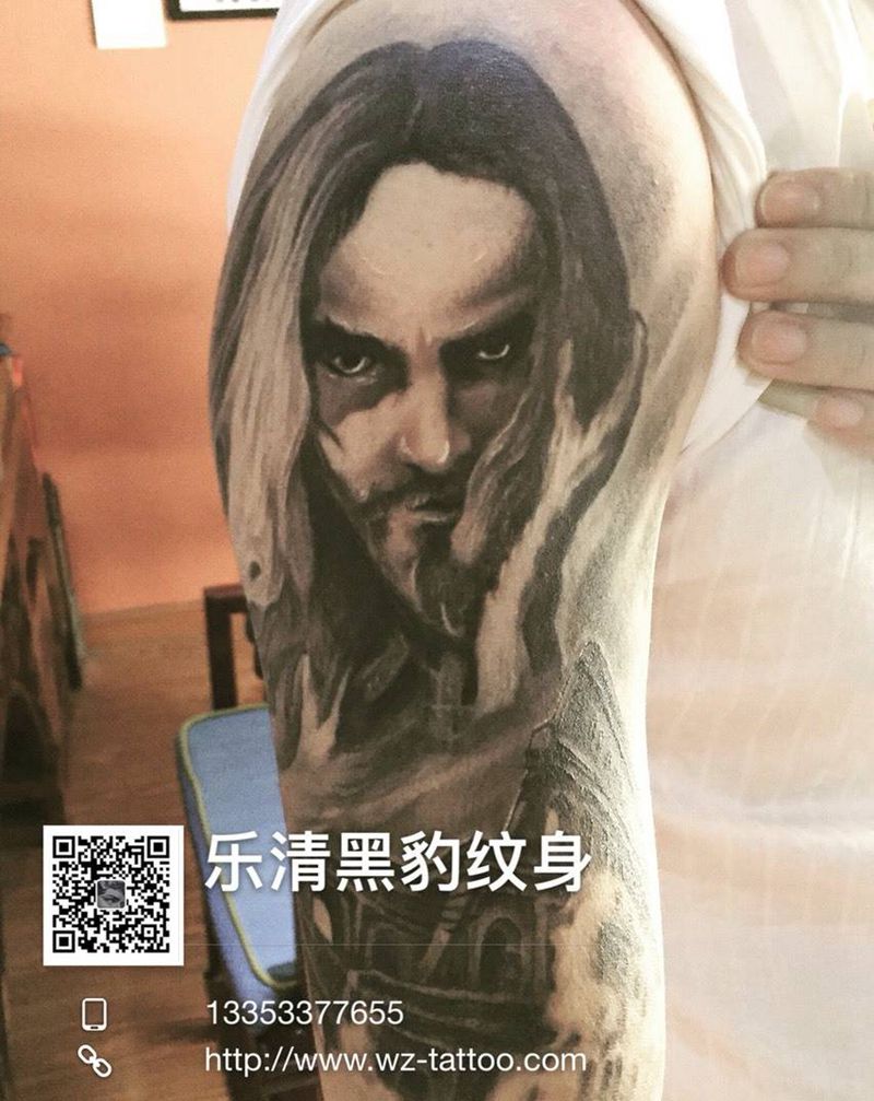 当前位置: 首页 >浙江省温州市纹身店-乐清黑豹纹身纹身图案>肖像纹身图片_成品肩部欧美原创纹身图案