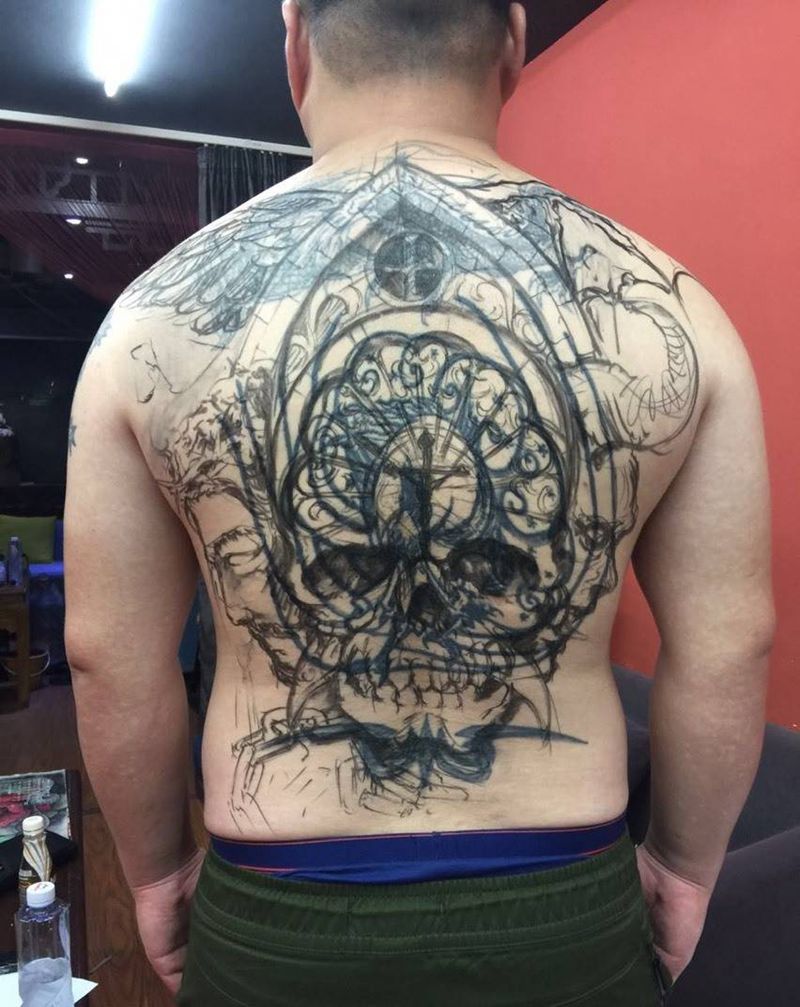 当前位置: 首页 >浙江省温州市纹身店-乐清黑豹纹身纹身图案>满背修改遮盖纹身图片