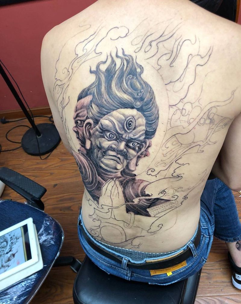 黑灰满背纹身图案