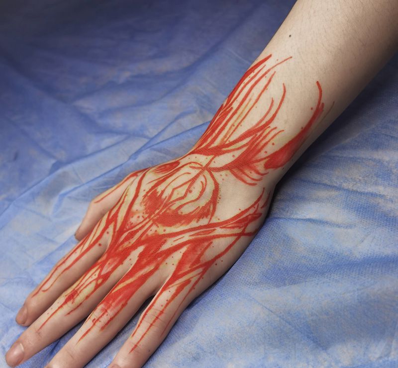 • 手背潮流时尚的玫瑰花眼睛纹身图案