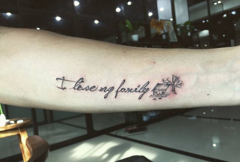 当前位置: 首页 >浙江省嘉兴市纹身店-嘉兴隐客刺青纹身图案>我爱我的家人纹身图片_成品手臂欧美习俗清新字符纹身图案