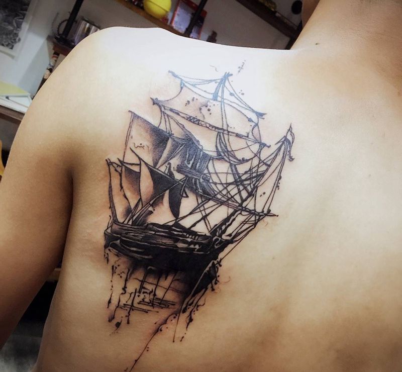 • 纹身吧推荐的披肩图腾半胛纹身图案作品展示
