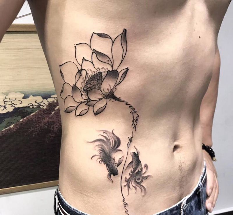 • T关于私处得爱!纹身图片_成品腹部清新字符图腾纹身图案