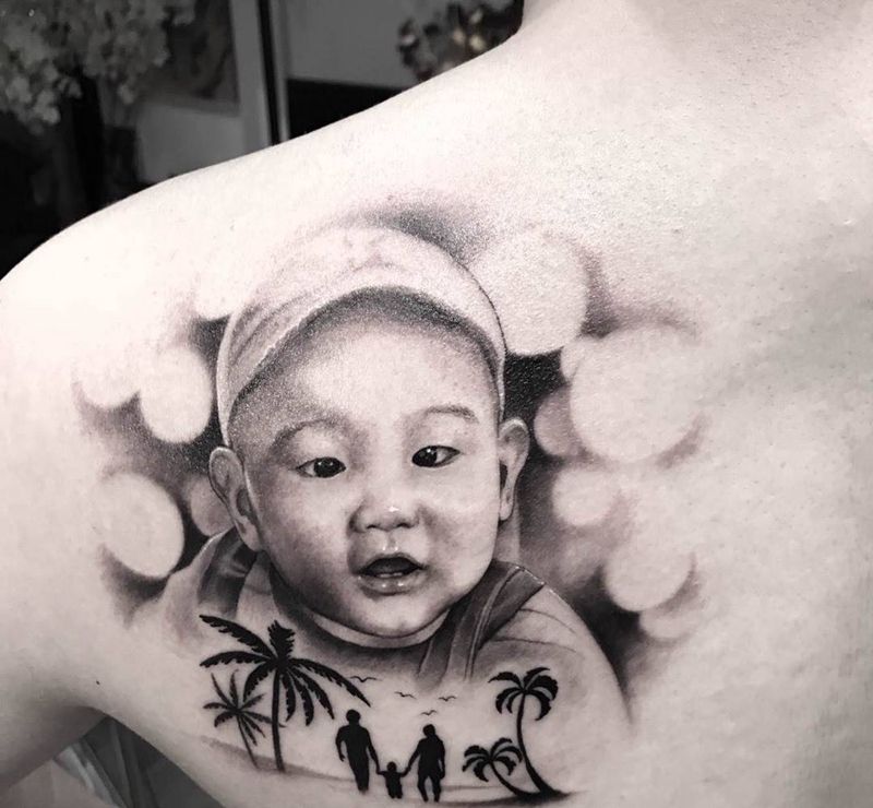 肖像 首席纹身师王焱小作品纹身图片_成品肩部肖像人物纹身图案