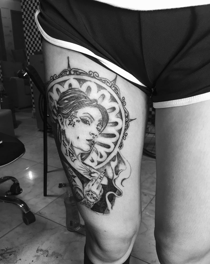 欧美风纹身图片_腿部欧美写实几何纹身图案