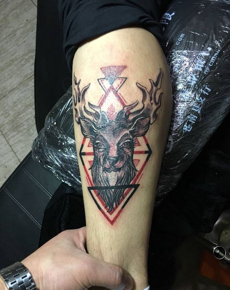 当前位置: 首页 >浙江省嘉兴市纹身店-万里刺青纹身图案>小腿麋鹿纹身图片