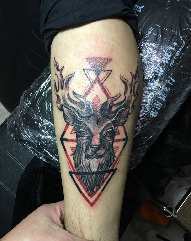 当前位置: 首页 >浙江省嘉兴市纹身店-万里刺青纹身图案>小腿麋鹿纹身图片