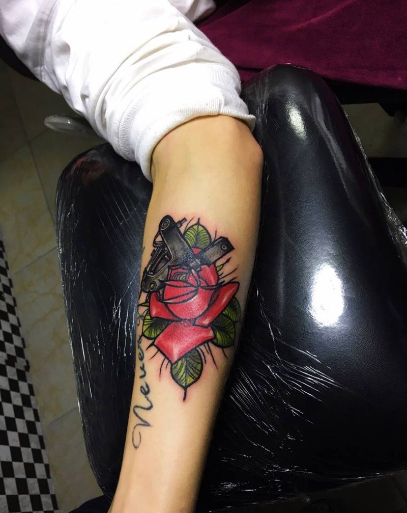 当前位置: 首页 >浙江省嘉兴市纹身店-万里刺青纹身图案>纹身机与花纹身图片_New School纹身图案