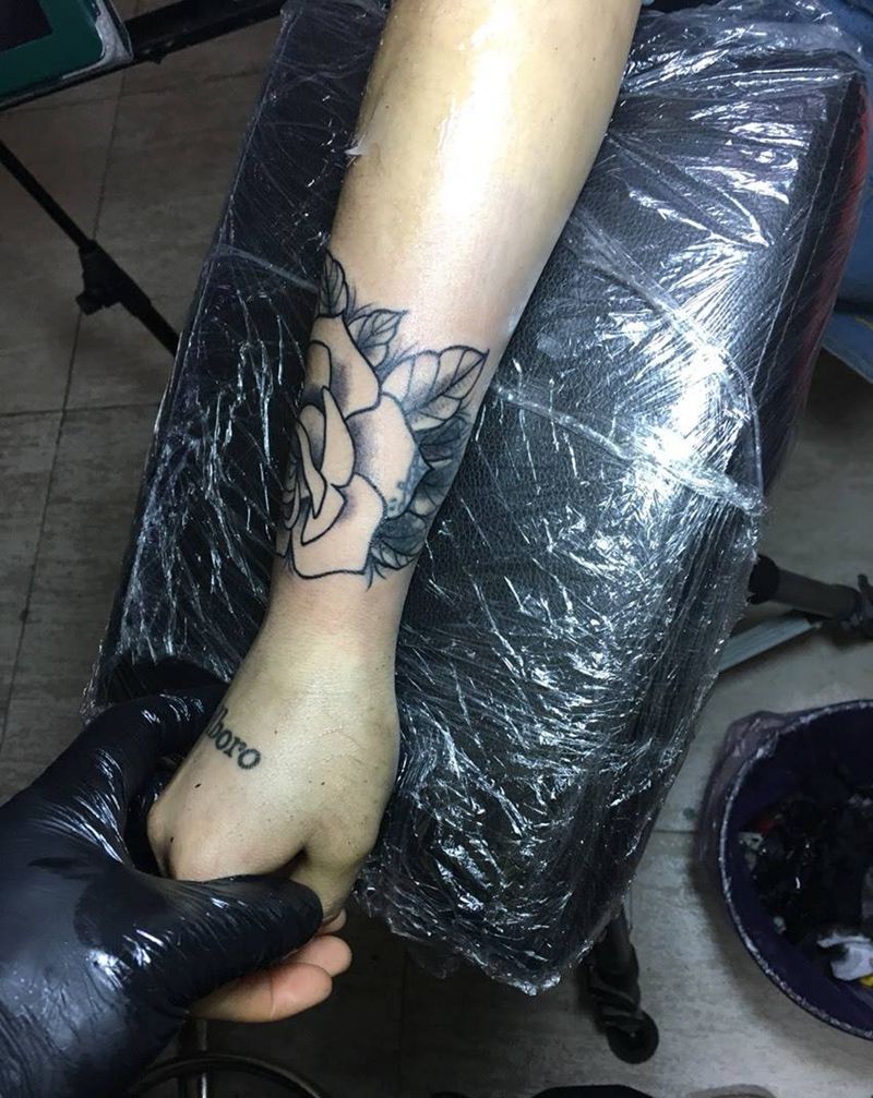 • 手背潮流时尚的玫瑰花眼睛纹身图案
