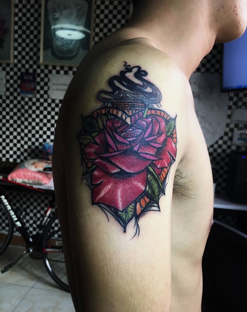 • 女性大花胸纹身_43张霸气漂亮的女性大花胸纹身图案作品
