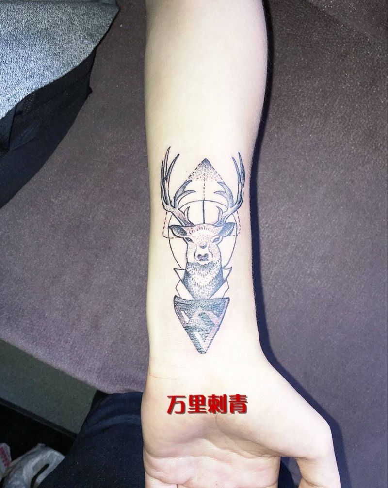 当前位置: 首页 >浙江省嘉兴市纹身店-万里刺青纹身图案>点刺灵鹿纹身图片