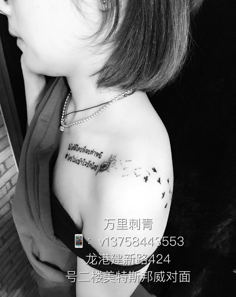 当前位置: 首页 >浙江省嘉兴市纹身店-万里刺青纹身图案>泰文+蒲公英纹身图片