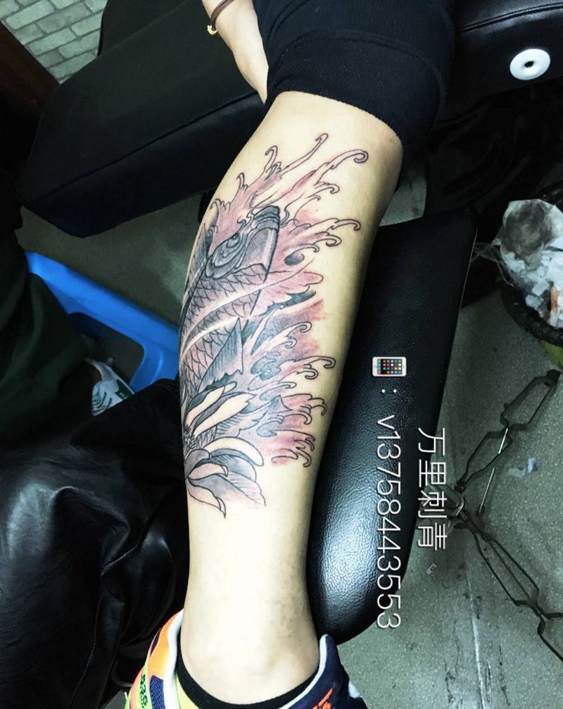 • T网红王老大花腿龙纹身图片_腿部新传统纹身图案