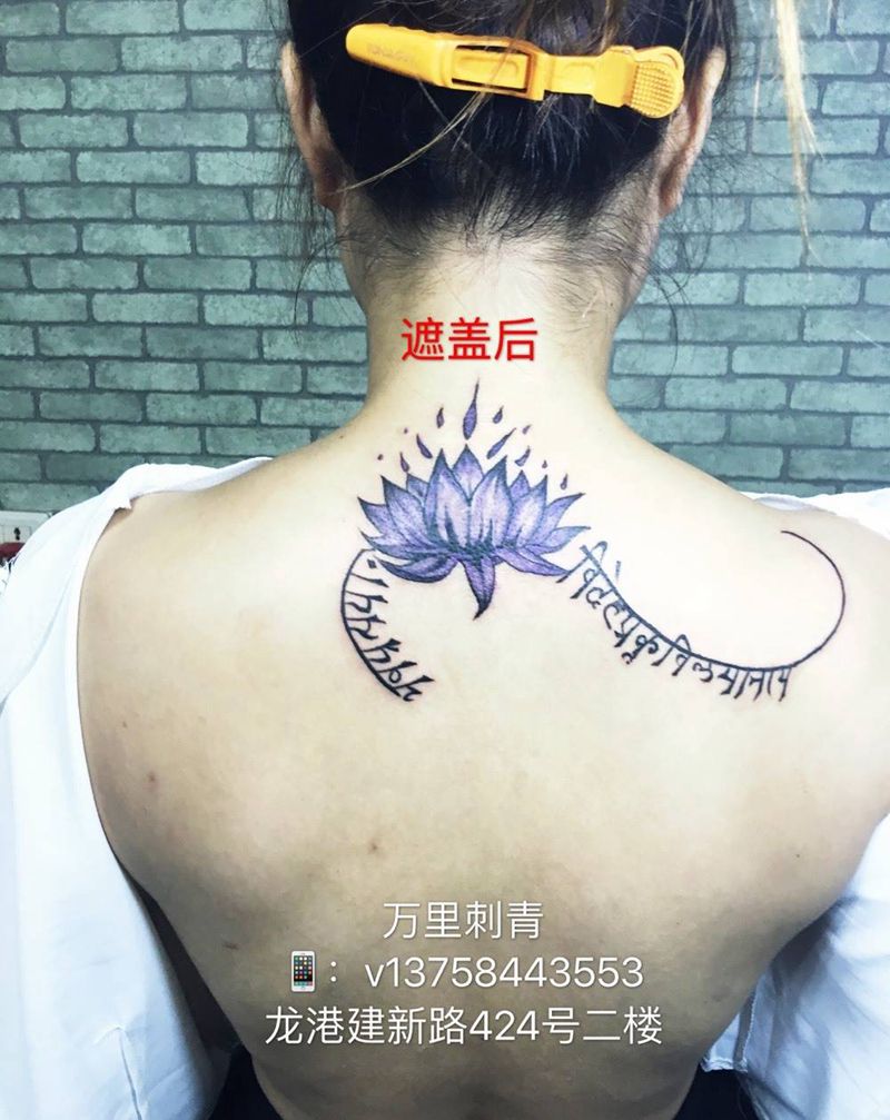 当前位置: 首页 >浙江省嘉兴市纹身店-万里刺青纹身图案>荷花梵文遮盖疤痕纹身图片