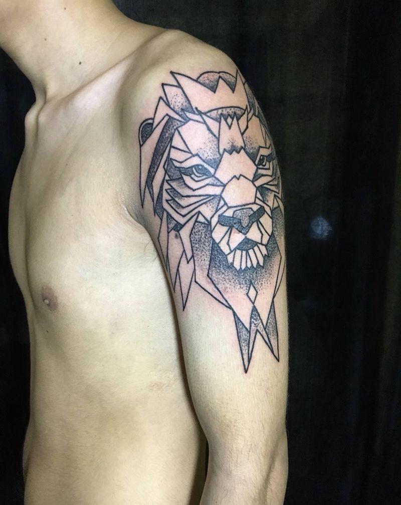 当前位置: 首页 >浙江省嘉兴市纹身店-万里刺青纹身图案>点线狮子纹身图片
