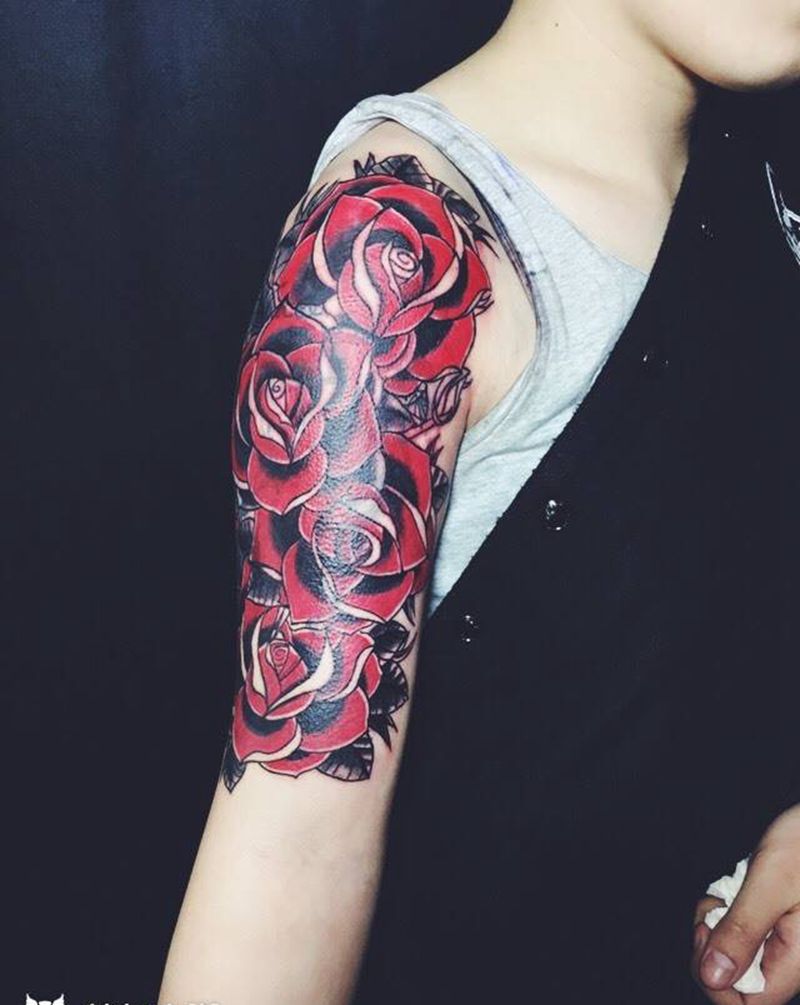 • 女性大花胸纹身_43张霸气漂亮的女性大花胸纹身图案作品