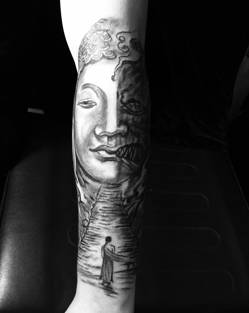 当前位置: 首页 >浙江省嘉兴市纹身店-万里刺青纹身图案>包小臂未完成,正面一侧纹身图片