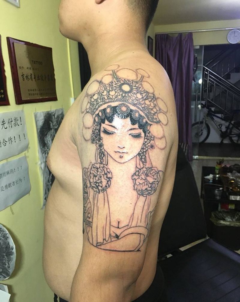 当前位置: 首页 >浙江省嘉兴市纹身店-万里刺青纹身图案>花旦线条未完成,待续纹身图片