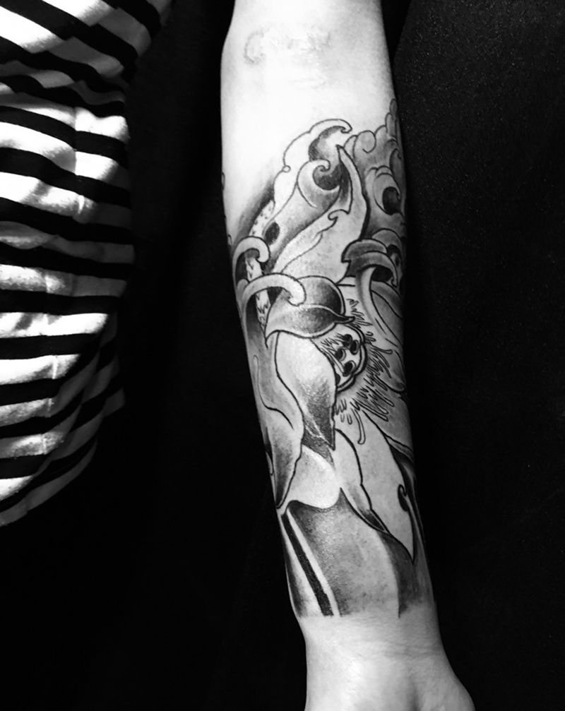 当前位置: 首页 >浙江省嘉兴市纹身店-万里刺青纹身图案>荷花浪花包小臂纹身图片