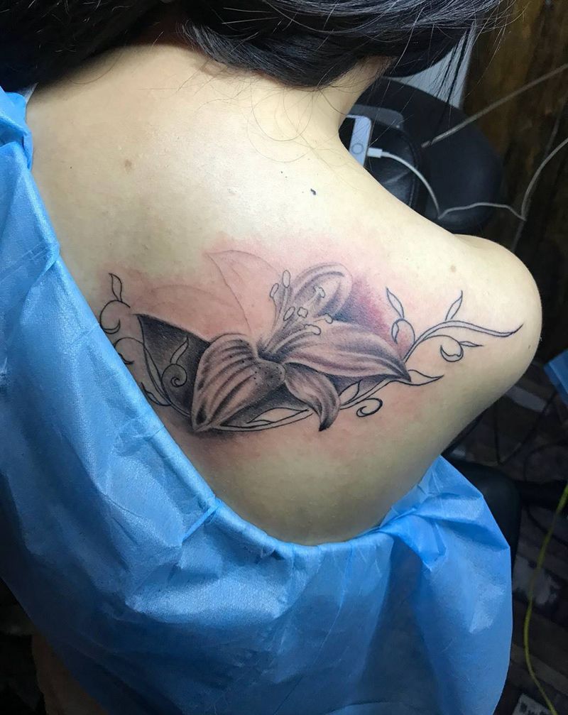 当前位置: 首页 >浙江省嘉兴市纹身店-飛云堂纹身纹身图案>小花花纹身图片_肩部写实植物纹身图案