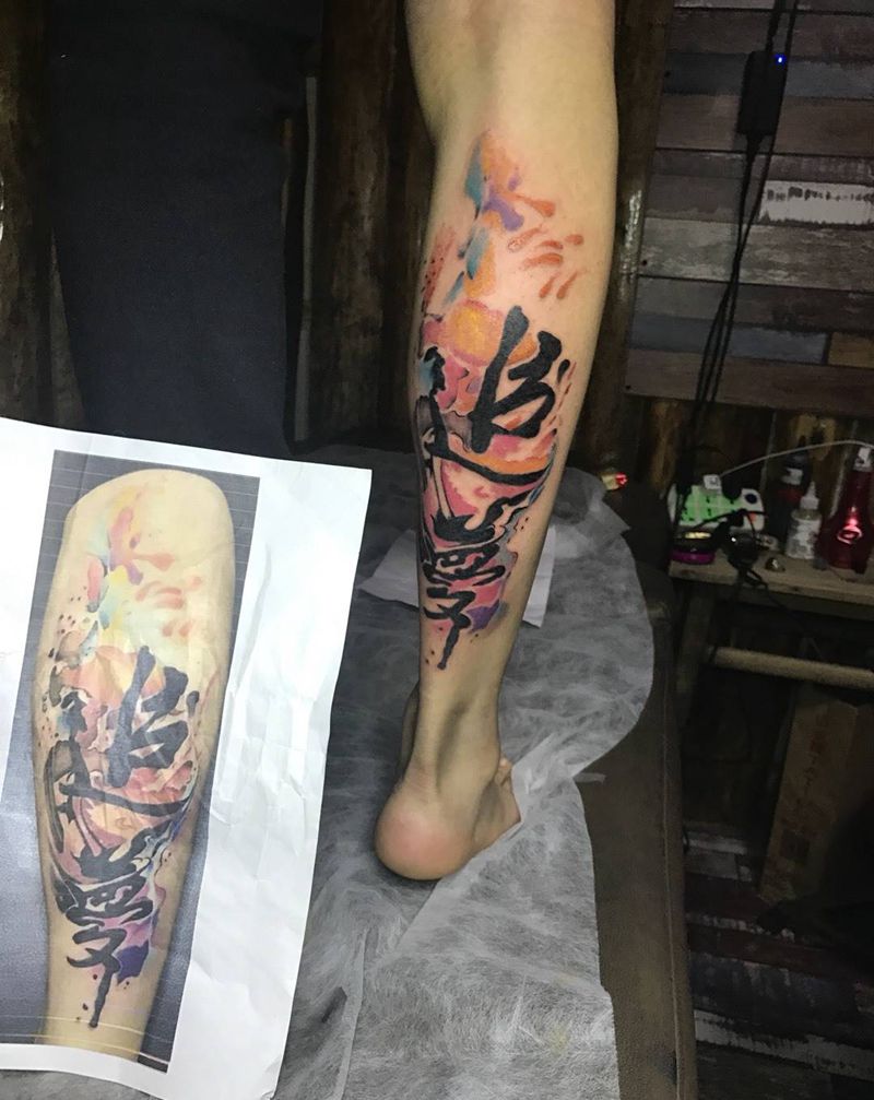 • T网红王老大花腿龙纹身图片_腿部新传统纹身图案