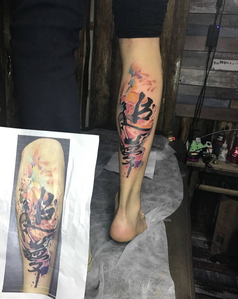 • T网红王老大花腿龙纹身图片_腿部新传统纹身图案