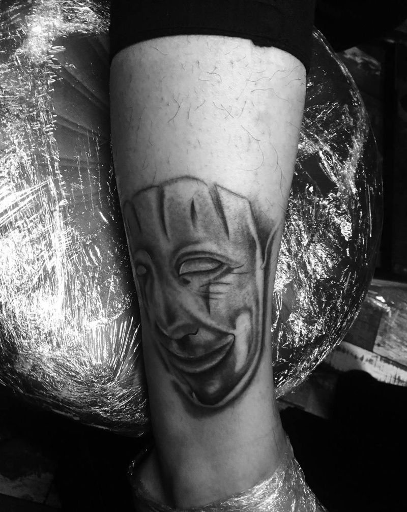 • T包小腿吹火男+阿多福纹身图片_腿部老传统新传统吹火男阿