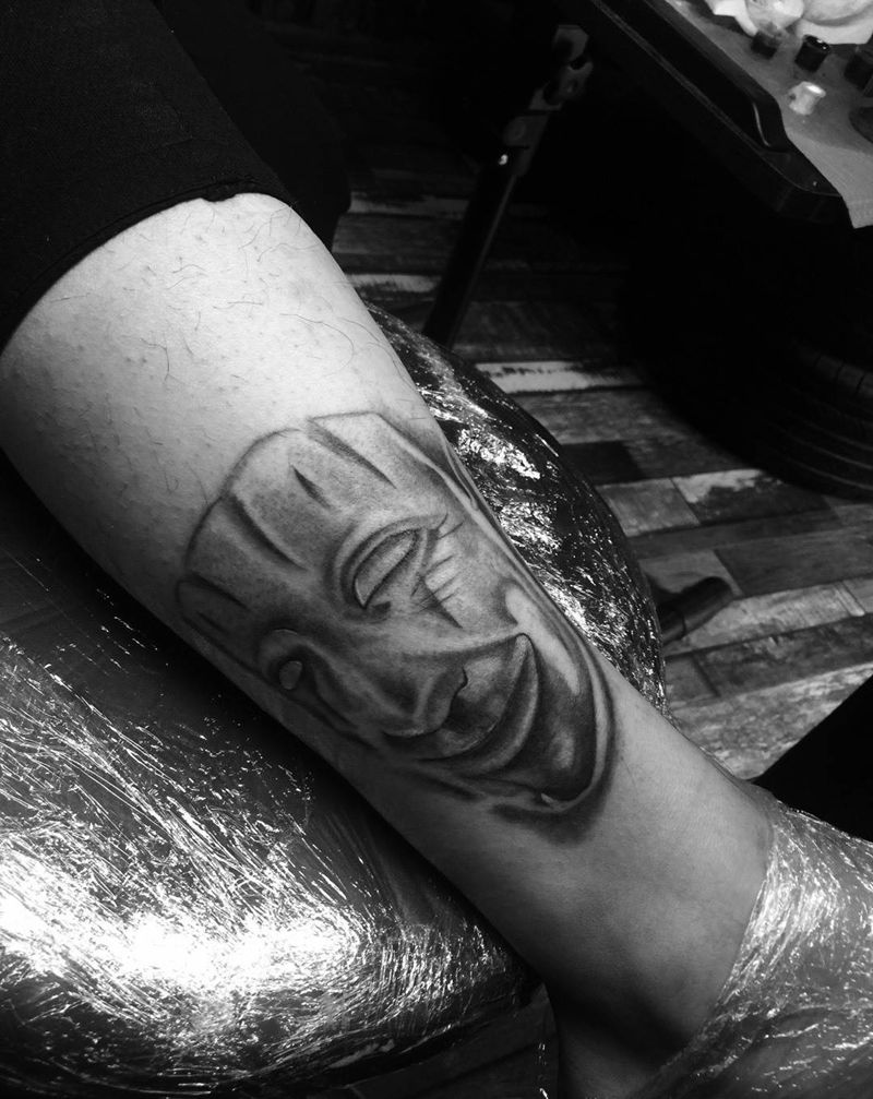 • T包小腿吹火男+阿多福纹身图片_腿部老传统新传统吹火男阿